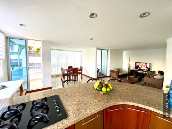 Cuenta con 3 amplias habitaciones, más habitación de servicio, estudio grande o sala de televisión, sala comedor, cocina abierta con espectacular vista, barra americana integrada al comedor y sala para poder antender a la visita. Tres balcones. Cuenta con 2 parqueaderos y depositó