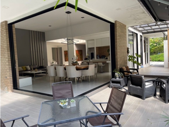 UBIXA Inmobiliaria presenta esta espectacular casa campestre, su arquitectura te permitira a ti y a tu familia disfrutar del campo, de su tranquilidad y de su paz. Ubicada en conjunto cerrado, en el sector de tribunas, salida a Armenia, a tan solo 20 minutos del centro de Pereira. La casa es de un solo nivel, cuenta con dos viviendas, la casa principal es grande, de espacios encantadores y doble altura. Cuenta con 4 habitaciones, mas habitacion de servicio. Hermosa cocina integrada a la sala y comedor, terraza, bodega.